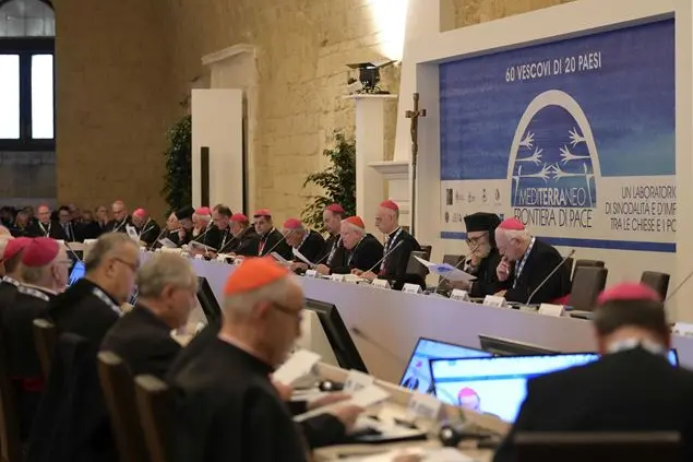 «Riscoprire il significato di una comune appartenenza al Mediterraneo per attingere alla bellezza e alla forza della comunione fraterna e per mettere a fuoco una profezia di unità». Il cardinale Gualtiero Bassetti, presidente della Conferenza episcopale italiana, apre l’incontro Mediterraneo frontiera di pace dando subito l’obiettivo dei lavori: «un incontro fraterno, tappa di un percorso più ampio, per essere Chiese che ritornano costantemente alle sorgenti della fede, per trasmettere ai giovani e alle future generazioni la bellezza e la gioia del Risorto; essere Chiese delle Beatitudini attente a far germinare una nuova cultura del Mediterraneo che non può che essere cultura dell’incontro e dell’accoglienza, pena il disordine incontrollato, l’impoverimento diffuso e la distruzione di intere civiltà; essere Chiese della profezia, rispetto a ogni sistema di potere e di arricchimento che genera indifferenza, paure, chiusuree, quindi, iniquità, oppressione, guerre, crimini contro l’umanità; essere Chiese dei “martiri mediterranei” che sanno riconoscere i segni dei tempi e sono capaci di dialogo per “disarmare” ogni uso blasfemo del nome di Dio in odio al fratello».
