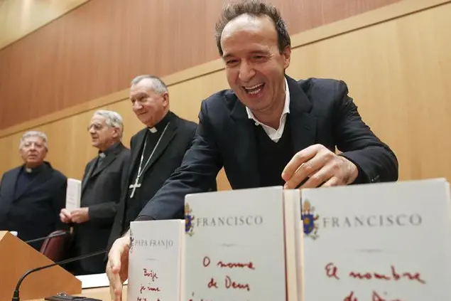 «Papa Francesco sta tirando la Chiesa con tutte le sue forze. E dove la sta tirando? La sta tirando verso il cristianesimo». Sono 24 minuti da mattatore quelli di Roberto Benigni alla presentazione del libro-intervista di papa Francesco "Il nome di Dio è misericordia".