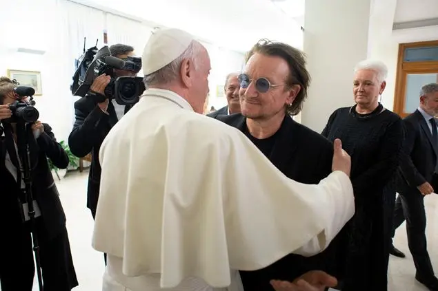Bono Vox è cofondatore di “One”, una fondazione benefica che conta dieci milioni di membri. A Santa Marta e poi in sala stampa, era accompagnato dal presidente mondiale di Scholas, José María Del Corral, il qual esi è detto molto emozionato. E ha aggiunto che «i nostri giovani hanno bisogno di un cambio educativo in tutto il mondo».