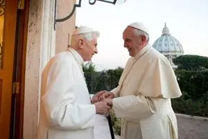 Jorge Mario Bergoglio, il suo successore, ha avuto più volte modo di vederlo. Francesco e Benedetto XVI si sono incontrati per la prima volta il 23 marzo 2013 quando il Papa si è recato a Castel Gandolfo. Dopo lo storico abbraccio, aveva pregato insieme al suo predecessore, inginocchiandosi accanto a lui. Il 2 maggio 2013, dopo due mesi trascorsi a Castel Gandolfo, Benedetto XVI ha fatto il suo ritorno in Vaticano, andando a vivere nel Monastero Mater Ecclesiae così come era stato annunciato. Dopo quella data, Ratzinger è apparso in pubblico il 5 luglio 2013, quando ha partecipato all’inaugurazione di un nuovo monumento a San Michele nei Giardini Vaticani, e il 22 febbraio 2014 quando, su invito di papa Francesco, ha preso parte al primo concistoro per la creazione di nuovi cardinali di Francesco.