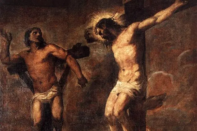 Il Buon ladrone fa un atto di fede di fronte a Gesù morente
