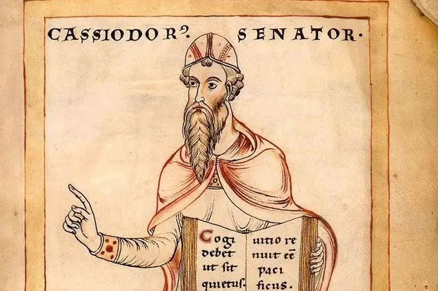 Marco Aurelio Cassiodoro, nato a Squillace intorno al 485 e morto a Vivarium verso il 580 era un «uomo di alto livello sociale, si dedicò alla vita politica e all’impegno culturale come pochi altri nell’occidente romano del suo tempo», come lo ha definito Papa Benedetto XVI nel corso di un’udienza generale del 2008: «Consapevole della necessità di non lasciare svanire nella dimenticanza tutto il patrimonio umano e umanistico, accumulato nei secoli d’oro dell’Impero Romano, Cassiodoro collaborò generosamente, e ai livelli più alti della responsabilità politica, con i popoli nuovi che avevano attraversato i confini dell’Impero e si erano stanziati in Italia» e «fu modello di incontro culturale, di dialogo, di riconciliazione». Le vicende storiche «non gli permisero di realizzare i suoi sogni politici e culturali, che miravano a creare una sintesi fra la tradizione romano-cristiana dell’Italia e la nuova cultura gotica» ma «lo convinsero però della provvidenzialità del movimento monastico, che si andava affermando nelle terre cristiane», disse ancora Joseph Ratzinger. Cassiodoro «concepì l’idea di affidare proprio ai monaci il compito di recuperare, conservare e trasmettere ai posteri l’immenso patrimonio culturale degli antichi, perché non andasse perduto. Per questo fondò Vivarium, un cenobio in cui tutto era organizzato in modo tale che fosse stimato come preziosissimo e irrinunciabile il lavoro intellettuale dei monaci». Nel suo insegnamento, distribuito in varie opere, ma soprattutto nel trattato De anima e nelle Institutiones divinarum litterarum, «la preghiera, nutrita dalla Sacra Scrittura e particolarmente dalla frequentazione assidua dei Salmi, ha sempre una posizione centrale quale nutrimento necessario per tutti», disse Benedetto XVI, che indico quello di Cassiodoro come «un ammonimento che possiamo accogliere come valido anche per noi. Viviamo infatti anche noi in un tempo di incontro delle culture, di pericolo della violenza che distrugge le culture, e del necessario impegno di trasmettere i grandi valori e di insegnare alle nuove generazioni la via della riconciliazione e della pace».