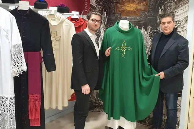 Dal novembre scorso l’azienda di Corato ha operato senza un attimo di sosta per modellare, assemblare e confezionare tutto l’abbigliamento liturgico commissionato dalla Cei. La ditta Tangari ha già vissuto una precedente esperienza, quando nel 2018 in occasione della visita del Pontefice a Molfetta per commemorare il 25mo dies natalis di don Tonino Bello, realizzò una speciale casula con il ricamo che richiama la croce, simbolo che ha sempre distinto e accompagnato la storia e l’immagine di don Tonino durante il suo percorso terreno. Questa volta c’è stato uno studio ancor più approfondito. «Il nostro ufficio stilistico ha dovuto ricercare un tessuto che fosse in linea con lo stile semplice ed elegante di papa Francesco», spiega Paolo Tangari, amministratore dell’azienda. «Una volta individuato un filato con queste caratteristiche, composto principalmente da lana e seta, è stato effettuato un bagno di colore per ottenere la stessa tonalità delle casule dei concelebranti. Il mix della tonalità dei colori tra la seta e la lana fa emergere il fascino dello stolone. La veste papale avrà uno stolone ricamato con la croce simbolo dell’evento e tanti piccoli dettagli attorno al collo. In aggiunta alla casula c’è anche la mitra, che riprende lo stesso tema».