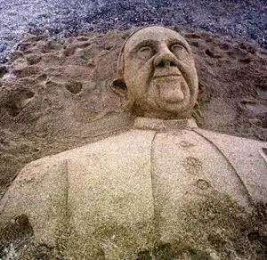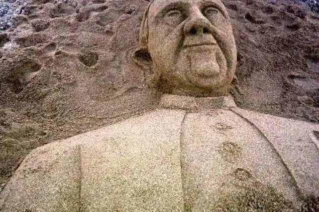 L’8 agosto scorso, giorno del suo quarantanovesimo compleanno, è stato «tutto il giorno in spiaggia sotto il sole cocente, nell’intento di portare a compimento l’impegno». Quale? Una statua di sabbia raffigurante Papa Francesco.