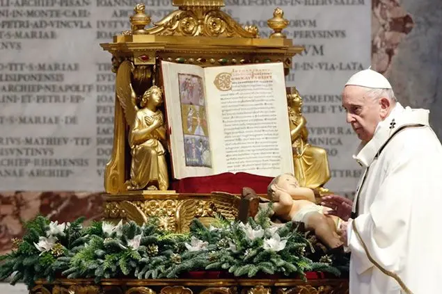 Papa Francesco, dopo aver “saltato” la celebrazione di Capodanno a causa dalla sciatalgia, celebra la Messa nella solennità dell’Epifania del Signore all’Altare della Cattedra della Basilica di San Pietro, com’è consuetudine in questo tempo di pandemia, davanti a circa ottanta fedeli, tutti distanziati e con la mascherina, e venticinque cardinali, che concelebrano, disposti ai lati dell’altare. Nell’omelia spiega qual è il senso e il significato dell’adorazione soffermandosi su tre espressioni tratte dalle letture di questa festa: “alzare gli occhi”, “mettersi in viaggio” e “vedere”.