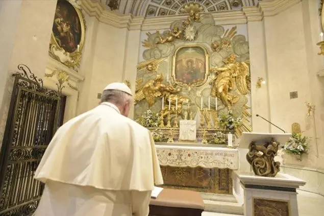 Una preghiera accorata. Dal sapore antico, anche se scritta in questo tribolato frangente. Papa Francesco ha affidato Roma, l'Italia e il mondo alla Madonna chiedendo la sua intercessione affinché Dio sconfigga il Coronavirus. Prima della Messa celebrata nel Santuario del Divino Amore dal cardinale Angelo De Donatis, vicario del Santo Padre per la dicoesi di Roma, sigillo di una giornata di preghiera e di digiuno, è stato trasmesso il viedomessaggio registrato da Jorge Mario Bergoglio. E la sua preghiera è stata recitata di nuovo al termine della celebrazione.