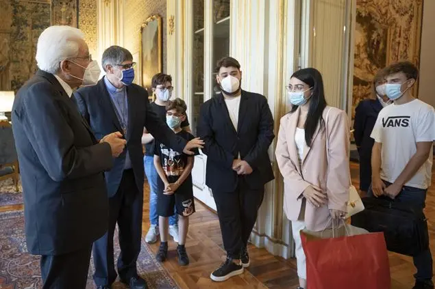 Le strade si svuotono, i bambini vengono reclusi in casa per la paura di finire ammazzati. Sono tanto amareggiato. Ancora una volta, non so che fare. Incontro le Forze dell’ordine, il Prefetto di Napoli, il Questore. Infine scrivo al Presidente della Repubblica, chiedendogli di ricevere i bambini del “Parco verde” al Quirinale. Sono italiani. Europei. Hanno gli stessi diritti che godono i loro coetanei a Milano, a Roma, a Bruxelles. Non sono, e non devono sentirsi, inferiori a nessuno. “Parco verde” è stata definita una delle più grandi piazze di spaccio d’Europa. Com’è possibile? Il Presidente accoglie il mio invito, limitando, però, per motivi sanitari, il numero dei ragazzi a cinque. Va bene lo stesso. Ci organizziamo. Andiamo. Due di essi, Adriano e Noemi, sono appena maggiorenni, gli altri tre, Lello, Francesco e Paolo sono più piccoli. Imbarazzi ed emozionati varcano il portone del Quirinale. Paolo, al saluto militare di un Corazziere alto due metri, non sapendo cosa fare, risponde con la genuflessione, come quando entra in chiesa. Bellissimo. Dopo una breve attesa, il presidente arriva. I ragazzi gli offrono in dono un Pulcinella pensoso, opera di un artista di Acerra. Mattarella ascolta con gra nde attenzione. Dopo una mia introduzione, Adriano prende la parola e racconta al Presidente la fatica di essere bambini e giovani al “Parco verde”.