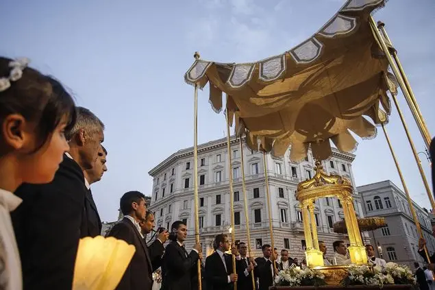 Il senso della festa sta dunque nella presenza reale di Cristo, per cui l’ostia consacrata non è un oggetto, né un idolo da esibire e portare a passeggio, ma racchiude una persona, col suo corpo, il suo sangue, la sua anima e la sua divinità. Oggi questa persona è ferita, malata, nel lutto, tanto che non può uscire di casa (“Gesù sarà in agonia fino alla fine del mondo”, scriveva Blaise Pascal), allora tocca a noi andarla a trovare e cercarla, certo davanti al tabernacolo in chiesa, ma anche in quel tabernacolo che sono gli ultimi, i sofferenti, le persone sole e povere, sempre più impoverite e spesso abbandonate.