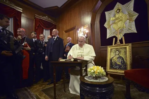 «Siamo già in cammino verso la piena comunione e già possiamo vivere segni eloquenti di un’unità reale, anche se ancora parziale», dice papa Francesco prima di recarsi, con Bartolomeo a benedire, insieme, i fedeli che attendono sotto la loggia della Basilica. Abbracciati, entrambi benedicenti dal balcone, il Papa e il Patriarca si sono recati poi nella Sala del trono per la firma della Dichiarazione comune nella quale si ripercorrono i passi in avanti fatti dallo storico abbraccio tra Paolo VI e Atenagora e si guarda al futuro. In particolare viene sottolineata l'importanza della Commissione mista internaizonale, istituita 35 anni fa al Fanar da Giovanni Paolo II e dal patriarca Dimitrios. Ma si esprime anche la «comune preoccupazione per la situazione in Iraq, in Siria e in tutto il Medio Oriente. Siamo uniti nel desiderio di pace e di stabilità e nella volontà di promuovere la risoluzione dei conflitti attraverso il dialogo e la riconciliazione».