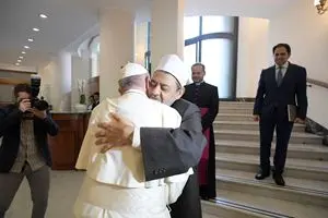 La cultura dell’incontro è rafforzata e solennizata da una presenza speciale: quella del grande imam di al-Azhar, il centro teologico e culturale del Cairo, il più autorevole nel mondo sunnita. «Questo è un altro elemento fondamentale del viaggio», ha notato Gisotti. «Qualcuno potrebbe chiedere perché proprio negli Emirati Arabi: in questo Stato c'è la sede del Muslim Council of Elders, ovvero il Consiglio dei Saggi musulmani, presieduto proprio dal grande imam di al-Azhar, l'egiziano Aḥmad Muḥammad Aḥmad al-Ṭayyib. Questo è un Istituto fondato nel 2014 e che vuole proprio promuovere il dialogo, la pace, attraverso delle personalità eminenti del mondo musulmano di cui evidentemente al-Tayyib rappresenta la sintesi e la maggiore importanza. Sappiamo anche quanto, con il grande imam, Francesco abbia iniziato un cammino di incontro, di dialogo: questa sarà la quinta volta che loro si incontrano. La prima è stata nel 2016, l’ultima nell’ottobre 2018. E poi, soprattutto, dobbiamo ricordare quel grande evento a cui si lega anche questo incontro interreligioso ad Abu Dhabi sulla fraternità umana, che è stata la Conferenza internazionale di pace e di dialogo interreligioso, proprio al Cairo, alla fine dell’aprile 2017. Il Papa e il grande imam sottolinearono l’importanza di una convivenza pacifica, di un dialogo e di un cammino insieme delle grandi fedi e delle grandi religioni, per la pace e contro ogni forma di violenza».