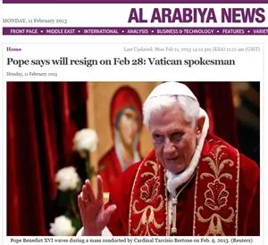 Sabato 16 febbraio. Padre Federico Lombardi, direttore della sala stampa della Santa Sede, ha commentato le dimissioni di Papa Benedetto XVI in una nota editoriale di Radio Vaticana. «Per essere sinceri, è una decisione che ha stupito più chi non lo conosceva, che chi lo conosceva bene e lo seguiva con attenzione». Secondo padre Lombardi, infatti, il Papa avrebbe palesato l’eventualità delle dimissioni qualche mese fa, nel libro-intervista “Luce del mondo”, in cui era risultato «assolutamente chiaro che stava svolgendo una missione ricevuta piuttosto che esercitare un potere posseduto».