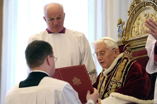 «Papa lascia Pontificato dal 28/2». Sono le 11.46 di lunedì 11 febbraio quando queste parole, diffuse dalla vaticanista dell’Ansa Giovanna Chirri, fanno il giro del mondo. Dalla Sala Stampa vaticana, durante il Concistoro dedicato alla canonizzazione dei martiri di Otranto, Benedetto XVI dà in latino l'annuncio della decisione di lasciare il Pontificato dal 28 febbraio: «Dopo aver ripetutamente esaminato la mia coscienza davanti a Dio, sono pervenuto alla certezza che le mie forze, per l’età avanzata, non sono più adatte per esercitare in modo adeguato il ministero petrino». Ecco, giorno dopo giorno, gli avvenimenti più importanti che si sono susseguiti da quella storica giornata.
