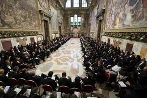 E proprio questo documento, «a settant’anni dalla sua adozione da parte dell’Assemblea Generale delle Nazioni Unite, avvenuta il 10 dicembre 1948», Francesco dedica l'incontro. «Per la Santa Sede, infatti, parlare di diritti umani significa anzitutto riproporre la centralità della dignità della persona, in quanto voluta e creata da Dio a sua immagine e somiglianza. Lo stesso Signore Gesù, guarendo il lebbroso, ridonando la vista al cieco, intrattenendosi con il pubblicano, risparmiando la vita dell’adultera e invitando a curare il viandante ferito, ha fatto comprendere come ciascun essere umano, indipendentemente dalla sua condizione fisica, spirituale o sociale, sia meritevole di rispetto e considerazione. Da una prospettiva cristiana vi è dunque una significativa relazione fra il messaggio evangelico e il riconoscimento dei diritti umani, nello spirito degli estensori della Dichiarazione Universale dei Diritti dell’Uomo. Tali diritti traggono il loro presupposto dalla natura che oggettivamente accomuna il genere umano. Essi sono stati enunciati per rimuovere i muri di separazione che dividono la famiglia umana e favorire quello che la dottrina sociale della Chiesa chiama sviluppo umano integrale».