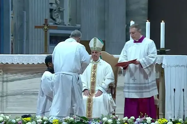 Il Vangelo, poi l’appello dei 23 diaconi ( tre gli italiani, da Roma, Bologna e Salerno) da ordinare. Papa Francesco, dal letto d’ospedale del Gemelli segue e prega Ha voluto inviare la sua omelia, da far leggere a monsignor Rino Fisichella. Il Pro-Prefetto del Dicastero per l'Evangelizzazione, Sezione per le Questioni Fondamentali dell'Evangelizzazione nel Mondo, che presiede Messa per il Giubileo dedicato a questi ministri, ricorda come, «nella celebrazione eucaristica dove la comunione assume la dimensione più piena e significativa, sentiamo papa Francesco più vicino a noi, presente in mezzo a noi». Chiama tutti a una preghiera più intensa «perché il Signore lo assista nel momento della prova e della malattia» e poi rivolge ai diaconi la parola del Pontefice. Francesco incentra la sua omelia sulla parola «gratuità». Una dimensione «fondamentale della vita cristiana e del vostro ministero» che si rivela in tre aspetti: «il perdono, il servizio disinteressato e la comunione». Il perdono è «un compito essenziale del diacono. Esso è infatti elemento indispensabile per ogni cammino ecclesiale e condizione per ogni convivenza umana. Gesù ce ne indica l’esigenza e la portata quando dice: “Amate i vostri nemici”». Per fare comunione, per crescere insieme, «condividendo luci e ombre, successi e fallimenti gli uni degli altri, è necessario saper perdonare e chiedere perdono, riallacciando relazioni e non escludendo dal nostro amore nemmeno chi ci colpisce e tradisce. Un mondo dove per gli avversari c’è solo odio è un mondo senza speranza, senza futuro, destinato ad essere dilaniato da guerre, divisioni e vendette senza fine, come purtroppo vediamo anche oggi, a tanti livelli e in varie parti del mondo». Il perdono, invece, prepara «al futuro una casa accogliente, sicura, in noi e nelle nostre comunità». Il diacono si «impegna a vedere – e ad insegnare agli altri a vedere – in tutti, anche in chi sbaglia e fa soffrire, una sorella e un fratello feriti nell’anima, e perciò bisognosi più di chiunque di riconciliazione, di guida e di aiuto».