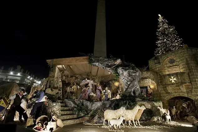È dal dicembre del 1982, per esplicito desiderio di Giovanni Paolo II, che in piazza San Pietro vengono allestiti i due simboli tradizionali del Natale, il presepe e l’albero. Il motivo di questa iniziativa lo spiegò personalmente papa Wojtyla: «Nel presepe contempliamo Colui che si è spogliato della gloria divina per farsi povero, spinto dall’amore per l’uomo. Accanto al presepe, l’albero di Natale, con lo sfolgorio delle sue luci, ricorda che con la nascita di Gesù rifiorisce l’albero della vita nel deserto». Per questa 35esima occasione in cui la natività e l’abete fanno parte dello scenario natalizio vaticano, il presepe è stato realizzato con il coordinamento dell’artista maltese Manwel Grech. L’allestimento riproduce il paesaggio dell’isola e misura 17 metri di larghezza e 12 di profondità, con un’altezza massima di 8 metri. Le 17 figure presenti portano indumenti e attrezzi tipici di Malta ed è anche presente nella scena un richiamo all’attualità rappresentato dal luzzu, tipica imbarcazione maltese, che rappresenta non solo la tradizione, la pesca e la vita, ma anche la drammatica realtà dei migranti che in quelle acque navigano su imbarcazioni di fortuna per raggiungere l’Italia.