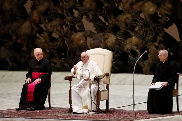 Papa Francesco arriva in anticipo in Aula Paolo VI per la consueta udienza del mercoledì. Non stringe mani e non passa nel corridoio centrale per evitare assembramenti. E commenta subito i Vangeli di Marco e di Matteo nei brai che parlano del battesimo nel fiume Giordano. «Gli Evangelisti», spiega, «concordano nell’attribuire importanza fondamentale a questo episodio. Narrano di come tutto il popolo si fosse raccolto in preghiera, e specificano come questo radunarsi avesse un chiaro carattere penitenziale».