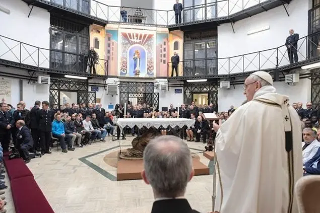 Infine, salutando la direttrice del carcere e un detenuto ha ricordato che «non c’è alcuna pena giusta – giusta! – senza che sia aperta alla speranza. Una pena che non sia aperta alla speranza non è cristiana, non è umana! Ci sono le difficoltà nella vita, le cose brutte, la tristezza – uno pensa ai suoi, pensa alla mamma, al papà, alla moglie, al marito, ai figli… è brutta, quella tristezza. Ma non lasciarsi andare giù: no, no. Io sono qui, ma per reinserirmi, rinnovato o rinnovata. E questa è la speranza. Seminare speranza. Sempre, sempre. Il vostro lavoro è questo: aiutare a seminare la speranza di reinserimento, e questo ci farà bene a tutti. Sempre. Ogni pena dev’essere aperta all’orizzonte della speranza. Per questo, non è né umana né cristiana la pena di morte. Ogni pena dev’essere aperta alla speranza, al reinserimento, anche per dare l’esperienza vissuta per il bene delle altre persone».