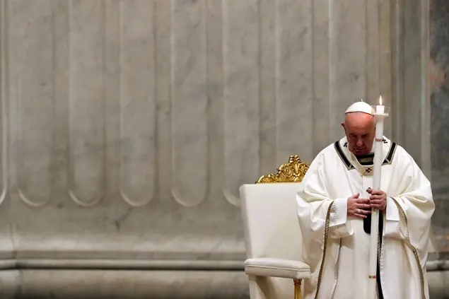 La benedizione del fuoco ai piedi dell’altare della Confessione, poi la piccola processione verso quello della Cattedra, con il Cristo miracoloso posto al centro. Nessuna preparazione del cero pasquale, nessuna accensione dei lumini tra i fedeli. Niente battesimi, come avviene di solito. Resta il cuore della celebrazione: il canto del Gloria, l’annuncio della Resurrezione. Resta la certezza che, «nella sfida del dolore» si può confidare nel Signore. «Dopo il sabato», ricorda papa Francesco nell’omelia, «le donne andarono alla tomba. È iniziato così il Vangelo di questa Veglia santa, con il sabato. È il giorno del Triduo pasquale che più trascuriamo, presi dalla fremente attesa di passare dalla croce del venerdì all’alleluia della domenica. Quest’anno, però, avvertiamo più che mai il sabato santo, il giorno del grande silenzio. Possiamo specchiarci nei sentimenti delle donne in quel giorno. Come noi, avevano negli occhi il dramma della sofferenza, di una tragedia inattesa accaduta troppo in fretta. Avevano visto la morte e avevano la morte nel cuore. Al dolore si accompagnava la paura: avrebbero fatto anche loro la stessa fine del Maestro? E poi i timori per il futuro, tutto da ricostruire. La memoria ferita, la speranza soffocata. Per loro era l’ora più buia, come per noi». Ma, avverte il Papa, l’atteggiamento delle donne insegna qualcosa anche a noi oggi: loro «non si lasciano paralizzare. Non cedono alle forze oscure del lamento e del rimpianto, non si rinchiudono nel pessimismo, non fuggono dalla realtà. Compiono qualcosa di semplice e straordinario: nelle loro case preparano i profumi per il corpo di Gesù. Non rinunciano all’amore: nel buio del cuore accendono la misericordia. La Madonna, di sabato, nel giorno che verrà a lei dedicato, prega e spera. Nella sfida del dolore, confida nel Signore».