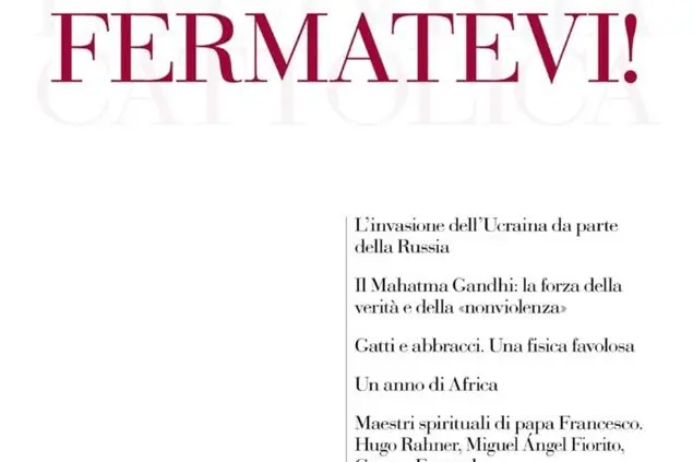 Per la prima volta dal 1850 La Civiltà Cattolica mette dunque sullo sfondo la sua testata dando spazio all’appello del Papa. “Bisogna fermarsi perché l’escalation potrebbe condurre l’umanità in un vicolo cieco, dal quale sarà difficile uscire”, afferma ancora Spadaro che aggiunge: “Ci ha colpito pure che Francesco abbia fatto esplicito riferimento alla Costituzione italiana per dire che chi ama la pace ‘ripudia la guerra come strumento di offesa alla libertà degli altri popoli e come mezzo di risoluzione delle controversie internazionali’ (art. 11)”. “Come cittadini e come credenti – conclude il direttore -, gli scrittori de La Civiltà Cattolica si uniscono al suo appello e lo rilanciano, nella speranza di contribuire, con la loro voce – alla quale invitiamo i nostri lettori a unirsi –, a far tacere le armi. Fermatevi!”.