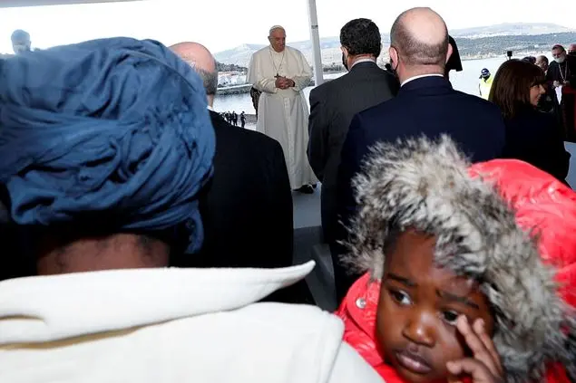 «Sono qui per dirvi che vi sono vicino, per dirlo con il cuore» dice il Papa. Il coro cattolico del campo di Mitilene gli hanno dato il benevenuto. Ma il Papa vede sorpattutto le lacrime ele sofferenze. Ripete le parole del «caro Fratello Bartolomeo» con il quale cinque anni fa era venuto nell’isola. «Chi ha paura di voi non vi ha guardato negli occhi. Chi ha paura di voi non ha visto i vostri volti. Chi ha paura di voi non vede i vostri figli. Dimentica che la dignità e la libertà trascendono paura e divisione. Dimentica che la migrazione non è un problema del Medio Oriente e dell’Africa settentrionale, dell’Europa e della Grecia. È un problema del mondo».