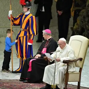 Durante l’ultima udienza generale in aula Nervi un bambino s’è alzato dal pubblico ed è salito sul palco accostandosi a una guardia svizzera, a due passi dalla sedia del Papa, che non ha battuto ciglio e, per nulla disturbato, dalla sua presenza, lo ha abbracciato e ha detto alla madre che era sua volta salita per riprendere il piccolo, di lasciarlo lì. Quindi, rivolgendosi a padre Georg ha aggiunto: “È argentino, quindi indisciplinato”, tra i fotografi impazziti e i sorrisi dell’uditorio. L’ennesimo fuori programma di un pontefice che ci ha abituato a gesti e parole inattesi, spiazzanti. Stavolta è avvenuto con un bambino in aula Nervi, durante la solenne occasione di un’udienza.