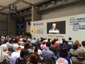Monsignor Galantino, in realtà, ha parlato del mondo d'oggi a modo suo ma l'ha fatto con un approccio che non poteva dispiacere ai ciellini. Ha tentato di delineare una "antropologia del limite" che si innesta perfettamente sul tema di questo XXXVI° Meeting, preso da un verso di Mario Luzi ("Di che è mancanza questa mancanza, cuore, che a un tratto ne sei pieno?") e che si traduce in un'esaltazione della persona e delle sue potenzialità.