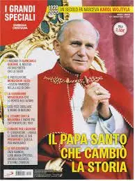 Dalla gioventù in Polonia al contributo al Vaticano II (partecipò in particolar modo alla stesura della Gaudium et spes e della Dignitatis humanae), dalla profonda devozione mariana che lo sostenne anche nell’attentato subito nel 1981 (trasse il suo motto, Totus tuus, dalla preghiera di affidamento alla Madonna di Grignion de Montfort) al magistero petrino, durante il quale ha lasciato documenti, gesti e parole di elevatissimo spessore spirituale (14 Encicliche, 15 Esortazioni apostoliche, 11 Costituzioni, 45 Lettere, 31 Motu proprio): alla sfaccettata personalità di Karol Wojtyla è dedicato un grande speciale di Famiglia Cristiana, 100 pagine arricchite dalle testimonianze del postulatore, monsignor Sławomir Oder («Viveva immerso nella luce di Dio»), dello storico Andrea Riccardi («Collocò il suo pontificato nel cuore della scena socio-politica planetaria»), del monaco Enzo Bianchi («Fu un ricercatore convinto e sincero dell'unità delle Chiese crisiane, protagionista di storiche aperture verso ebrei e musulmani»), dell’economista Stefano Zamagni («Per lui il lavoro era ingegno e dignità, non merce; era anticomunista, ma non un cantore acritico del capitalismo») , del cardinale Angelo Comastri («Mi disse commosso: "Nella sacra casa di Loreto si custodisce la memoria del sì decisivo di Maria"»), del sociologo Francesco Belletti («Indicò nella famiglia una ricchezza per l'intera umanità») e dello scrittore Stefano Campanella, che svela il misterioso rapporto fra il Pontefice e padre Pio.