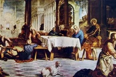 Il Vangelo di Giovanni, al capitolo 13, racconta l'episodio della lavanda dei piedi (nella foto in alto, l'opera del Tintoretto, La lavanda dei piedi, 1548 – 1549, olio su tela, Madrid, Museo del Prado).