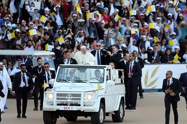 Due giorni e otto secoli. Tanti ce ne sono voluti perché, dopo l’abbraccio tra San Francesco e il sultano Malek Al Kamel, cristiani e musulmani si ritrovassero di nuovo assieme. Nello stadio Zayed Sprot city, 4.000 persone di fede islamica partecipano alla messa di papa Francesco, "Per la pace e la giustizia", assieme a oltre 120.000 cattolici (fedeli caldei, copti, greco-cattolici, greco-melchiti, latini, maroniti, siro-cattolici, siro-malabaresi, siro-malancaresi, le cui comunità il Papa cita e ringrazia una per una). Un evento senza precedenti in un Paese, gli Emirati Arabi uniti, dove il culto è stato possibile, finora, solo all’interno degli edifici e mai pubblicamente. Un’apertura dopo la dichiarazione congiunta firmata ieri dal Pontefice e dal grande Imam di Al –Azhar, Ahmad Al-Tayyeb e dopo le parole di quest’ultimo: «Nei nostri Paesi i cristiani non sono una minoranza, ma cittadini a pieno titolo».