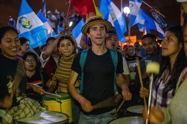 Per strada, a difesa della libertà di voto, anche i seminaristi si sono uniti alla popolazione che manifesta per Arevalo con le bandiere bianche e celesti del Guatemala. Ma non solo loro.