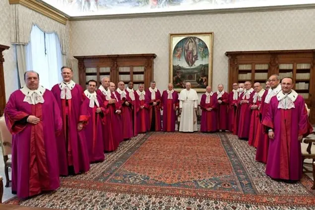 «Non restare inerti davanti agli effetti disastrosi che una decisione sulla nullità matrimoniale può comportare», ha poi aggiunto il Papa. «Il vostro Tribunale apostolico, come anche agli altri Tribunali della Chiesa, viene chiesto che siano rese più accessibili e agili, possibilmente del tutto gratuite, le procedure per il riconoscimento dei casi di nullità”, ha ricordato Francesco: “La Chiesa è madre e voi, che avete un ministero ecclesiale in un settore tanto vitale qual è l’attività giudiziaria, siete chiamati ad aprirvi agli orizzonti di questa pastorale difficile, ma non impossibile, che riguarda la preoccupazione per i figli, quali vittime innocenti di tante situazioni di rottura, divorzio o di nuove unioni civili”. “Si tratta di esercitare la vostra missione di giudici come un servizio carico di senso pastorale, che non può mai mancare nella delicata decisione sulla nullità o meno dell’unione coniugale”, ha spiegato il Papa entrando nell’attività giudiziale: “Spesso si pensa alla dichiarazione di nullità matrimoniale come a un atto freddo di mera decisione giuridica. Ma non è e non può essere così. Le sentenze del giudice ecclesiastico non possono prescindere dalla memoria, fatta di luci e di ombre, che hanno segnato una vita, non solo dei due coniugi ma anche dei figli. Coniugi e figli costituiscono una comunità di persone, che si identifica sempre e certamente col bene della famiglia, anche quando essa si è sgretolata”.