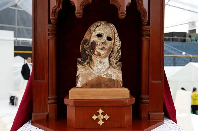 Venerata anche da papa Francesco, rappresenta oggi un continuo e provocante monito sugli effetti devastanti della violenza umana e un simbolo della superiore forza dell’amore materno di Maria, invocata per la pace del mondo. La testa della Vergine di Nagasaki ha ispirato al Cardinale Angelo Comastri, vicario generale di Sua Santità per la Città del Vaticano, questa preghiera pubblicata dal settimanale Maria con te nel numero 32, in questi giorni in edicola.