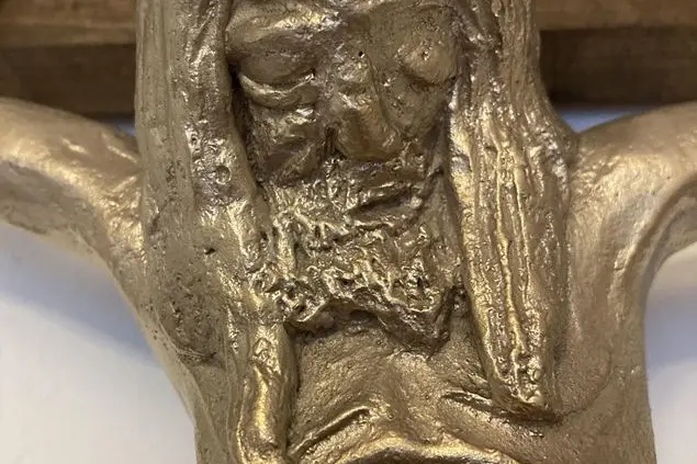 Un crocifisso ispirato all’uomo della Sindone: una piccola scultura in bronzo, fissata a una croce in legno di ciliegio. Piccola nelle dimensioni, ma densa di significati. Un crocifisso “atipico”, che trascende l’iconografia tradizionale (ereditata da millenni di storia dell’arte), per restituirci un’immagine più coerente con i dati storici e scientifici relativi alla crocifissione, pratica di disumana crudeltà, che esponeva il condannato a sofferenze indicibili. Ma quell’opera è atipica anche perché nata in modo speciale: a realizzarla, infatti, è stato lo scultore non vedente Andrea Bianco.