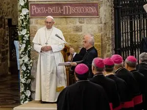 Possiamo pregare su questo. Ognuno come lo sente. Invito i Frati, i Vescovi ad andare nei confessionali – anche io ci andrò – per essere a disposizione del perdono. Ci farà bene riceverlo oggi, qui, insieme. Che il Signore ci dia la grazia di dire quella parola che il Padre non ci lascia finire, quella che ha detto il figliol prodigo: “Padre ho peccato contro…”, e [il Padre] gli ha tappato la bocca, lo ha abbracciato. Noi incominciamo a parlare, e Lui ci tapperà la bocca e ci rivestirà... “Ma, padre, domani ho paura di fare lo stesso…”. Ma torna! Il Padre sempre guarda la strada, guarda, in attesa che torni il figliol prodigo; e tutti noi lo siamo. Che il Signore ci dia questa grazia.