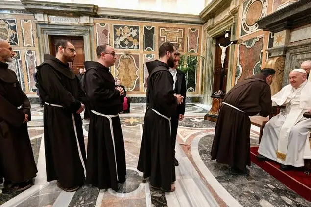 In Francesco, ha continuato il Papa, «uomo pacificato nel segno della croce, con il quale benediceva i fratelli, le stimmate rappresentano il sigillo dell'essenziale. Ciò richiama anche voi a tornare all'essenziale nei vari aspetti del vostro vissuto: nei percorsi formativi, nelle attività apostoliche e nella presenza in mezzo alla gente; ad essere perdonati portatori di perdono, guariti portatori di guarigione, lieti e semplici nella fraternità; con la forza dell'amore che sgorga dal costato di Cristo e che si alimenta nel vostro personale incontro con Lui, da rinnovare ogni giorno con un serafico ardore che bruci il cuore».