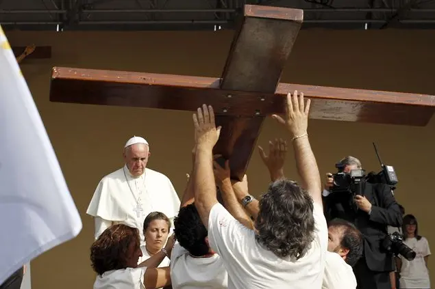Ma poi il Papa dice anche «qualcosa che non piace, che non è popolare. Ma anche il Papa alcune volte deve rischiare sulle cose per dire la verità: l'amore è nelle opere e nel comunicarsi, ma l'amore è molto rispettoso delle persone, non usa le persone, cioè l'amore è casto e a voi giovani, in questo mondo edonista, in questo mondo dove soltanto ha pubblicità il piacere, passarla bene, fare bene la vita io dico siate casti, siate casti. Tutti noi nella vita siamo passati per momenti in cui questa virtù è molto difficile, ma è proprio la prova di un amore genuino, che sa dare la vita che non cerca di usare l'altro per il proprio piacere, un amore che fa la vita dell'altra persona sacra, io ti rispetto, io non voglio usarti, io non voglio usarti». Ai giovani ripete «fate lo sforzo di vivere l'amore castamente», prima di dire che l'amore è anche sacrificio e servizio: «se io dico che amo e non servo l'altro, non aiuto l'altro, non lo faccio andare avanti, non mi sacrifico per gli altri non è amore».
