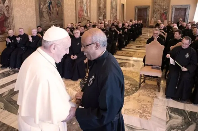 sono lieto di incontrarvi in occasione del vostro Capitolo Generale e ringrazio il Superiore per le sue parole. In questi giorni, le vostre riflessioni sono state guidate dal tema «Rinnovare la nostra missione: Gratitudine, Profezia e Speranza». Queste tre parole: gratitudine, profezia e speranza esprimono lo spirito con cui desiderate stimolare la vostra Congregazione ad un rinnovamento nella missione. Infatti, oltre ad eleggere il governo dell’Istituto, voi vi proponete di attuare un nuovo cammino di formazione continua per le vostre comunità, radicato nell’esperienza della vita quotidiana; e inoltre intendete operare un discernimento sulla metodologia pastorale nell’approccio alle giovani generazioni.