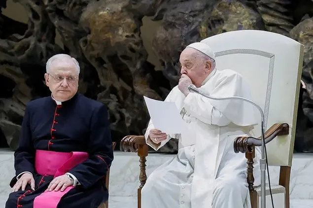 «Ancora non sto bene, con questa gripe», influenza in spagnolo, e «la voce non è bella», ha detto ai fedeli presenti con la voce un po’ affaticata. Al termine della catechesi e dopo i saluti in varie lingue ai pellegrini, Francesco, però, decide di prendere la parola e fare personalmente il suo appello per la pace: «Per favore, continuiamo a pregare per la grave situazione in Israele e in Palestina. Pace per favore, pace», ha detto nonostante abbia dovuto interrompersi per qualche colpo di tosse. «Auspico che prosegua la tregua in corso a Gaza, affinché siano rilasciati tutti gli ostaggi e sia ancora consentito l'accesso ai necessari aiuti umanitari. Ho sentito la parrocchia lì, manca l'acqua, manca il pane, la gente soffre. È la gente semplice, la gente del popolo che soffre, non soffrono quelli che fanno la guerra. Chiediamo la pace». Poi il pensiero per l’Ucraina: «Non dimentichiamo, parlando di pace, il caro popolo ucraino, che soffre tanto, ancora in guerra. La guerra sempre è una sconfitta. Tutti perdono. Tutti no: c'è un gruppo che guadagna tanto, i fabbricatori delle armi, questi guadagnano bene sopra la morte degli altri».
