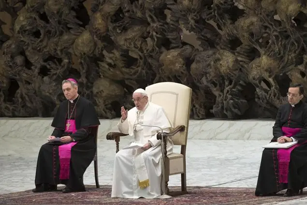 Papa Francesco prosegue il ciclo di catechesi dedicato alla Messa e si sofferma, nell’ultima udienza generale prima del Natale, ai riti introduttivi, il cui scopo, ricorda, è far sì che i fedeli formino una comunità: l’atto penitenziale, l’orazione colletta, quella colletta dell’intenzione dei popoli che sale al Cielo come preghiera. La Messa, spiega il Papa, «è composta da due parti, che sono la Liturgia della Parola e la Liturgia eucaristica, così strettamente congiunte tra di loro da formare un unico atto di culto Introdotta da alcuni riti preparatori e conclusa da altri, la celebrazione è dunque un unico corpo e non si può separare, ma per una comprensione migliore cercherò di spiegare i suoi vari momenti, ognuno dei quali è capace di toccare e coinvolgere una dimensione della nostra umanità. È necessario conoscere questi santi segni per vivere pienamente la Messa e assaporare tutta la sua bellezza».
