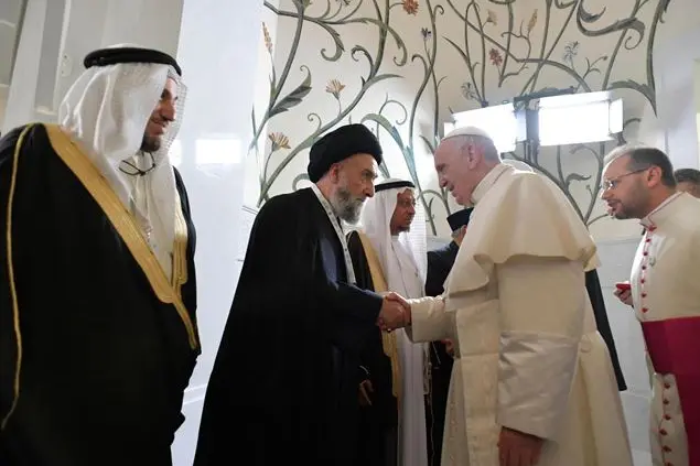 In tutto il discorso di papa Francesco risuona la parola «fratellanza» e la condanna di ogni tipo di violenza. Non una condanna astratta, ma un impegno concreto sull’educazione, sulla conoscenza, sulla preghiera. D’altra parte è il meeting della fraternità umana ad averlo invitato all’incontro interreligioso in cui tutti si stanno impegnando per una pacifica convivenza. «Il logo di questo viaggio raffigura una colomba con un ramoscello di ulivo», dice papa Francesco. «È un’immagine che richiama il racconto del diluvio primordiale, presente in diverse tradizioni religiose. Secondo il racconto biblico, per preservare l’umanità dalla distruzione Dio chiede a Noè di entrare nell’arca con la sua famiglia. Anche noi oggi, nel nome di Dio, per salvaguardare la pace, abbiamo bisogno di entrare insieme, come un’unica famiglia, in un’arca che possa solcare i mari in tempesta del mondo: l’arca della fratellanza».