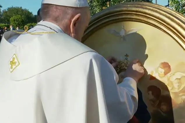 Al termine della celebrazione il Papa, in piedi davanti all’icona, incorona l’immagine della Madonna, un olio su tela del 1700. Ai suoi piedi il Pontefice ha deposto i «tanti nodi che si stringono attorno alle nostre esistenze e legano le nostre attività». Ha parlato di quelli della violenza e della guerra,  dell’egoismo e dell’indifferenza, dei nodi economici e sociali.
