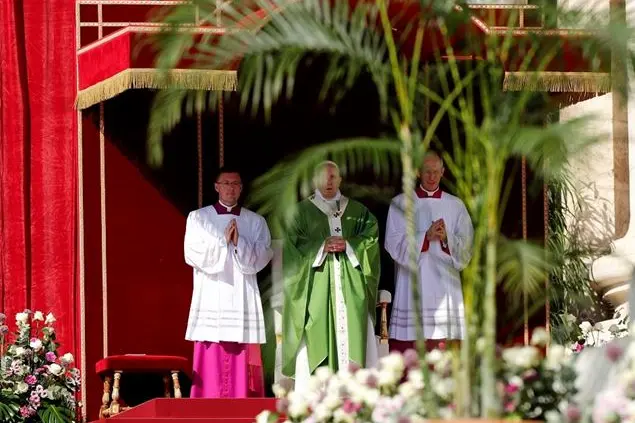 (Foto Ansa in copertina: la statua di bronzo realizzata dallo scultore canadese Timothy P. Schmalz inaugurata in piazza San Pietro. Foto Reuters qui sopra: un momento della celebrazione eucaristica)