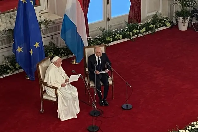 Questo si fa sempre con la apce, non dimentichiamo che la guerra sempre è una sconfitta. è triste che oggi in un Paese dell'Europa gli investimenti che danno più profitto sono quelli in costruzioni di armi, dice Francesco. E intanto ricorda che il Lussemburgo ha sviluppato una «solida struttura democratica» che «ha a cuore la dignità della persona umana e la difesa delle sue libertà fondamentali». Pur essendo un Paese piccolo per dimensioni territoriali e numero di abitanti (674mila in tutto), il Lussemburgo svolge un ruolo importante sul piano internazionale ed è diventato un centro nevralgico a livello economico e finanziario. Un esempio di inclusione e sviluppo resi possibili da un lavoro «paziente di costruzione di istituzioni e leggi sagge, le quali, disciplinando la vita dei cittadini secondo criteri di equità e nel rispetto dello stato di diritto, pongono al centro la persona e il bene comune, prevenendo e contrastando i pericoli di discriminazione e di esclusione. Il Lusssemburgo è un Paese dalla porte aperte e ha una bella testimonianza di integrazione e di non esclusione».