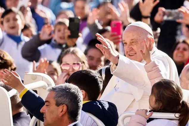 Anche oggi, ha osservao nei suoi lanci l'agenzia di stampa Agensir, il Papa ha cominciato l’udienza generale facendo salire sulla jeep bianca sei piccoli ospiti, che si sono goduti il giro tra i vari settori della piazza delimitata dal colonnato del Bernini. In una mattinata soleggiata e dalle temperature mite, i numerosi fedeli che hanno affollato i settori delimitati dalle transenne hanno salutato a gran voce Papa Francesco, muniti degli immancabili telefonini per le foto e i selfie. A fare da sfondo, la musica gioiosa di una banda musicale, che ha ritmato tutta la fase precedente alla catechesi, durata circa un quarto d’ora.