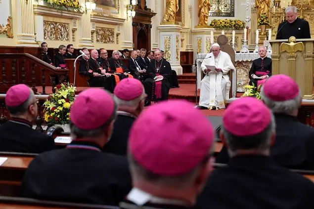 «Per sconfiggere la cultura dell'esclusione occorre che iniziamo noi: i pastori, che non si sentano superiori ai fratelli e alle sorelle del Popolo di Dio; gli operatori pastorali, che non intendano il loro servizio come potere. Si inizia da qui». Papa Francesco pronuncia, nella cattedrale di Notre-Dame in Quebec, l'omelia dei Vespri recitati insieme con i vescovi, i sacerdoti, i diaconi, i consacrati, i seminaristi e gli operatori pastorali e indica loro le sfide per diventare «i costruttori di una Chiesa diversa: umile, mite, misericordiosa, che accompagna i processi, che lavora decisamente e serenamente all'inculturazione, che valorizza ognuno e ogni diversità culturale e religiosa». Mai più, ripete, «la comunità cristiana si lasci contaminare dall'idea che esista una superiorità di una cultura rispetto ad altre e che sia legittimo usare mezzi di coercizione nei riguardi degli altri».