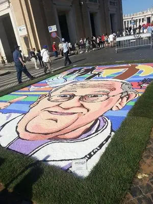 Intanto è festa in via della Conciliazione e in piazza Pio XII dove oltre mille maestri fiorai provenienti da tutto il mondo, hanno allestito 40 quadri floreali. Un tappeto multicolore che copre tremila metri quadrati utilizzando 500 mila fiori. L'infiorata romana, che ha oltre 400 anni di storia, è nata proprio come omaggio ai Santi patroni Pietro e Paolo ai quali si donavano, già nel 1600 , quadri floreali realizzati davanti alla basilica di San Pietro.