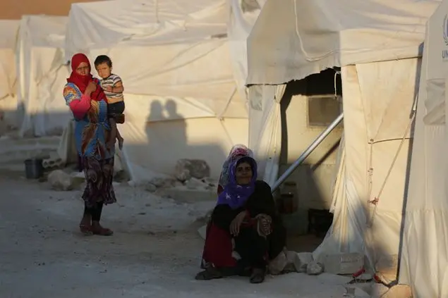 (Foto Reuters: qui sopra, una famiglia di sfollati nella provincia siriana di Idlib. In copertina: il Papa all'Angelus)