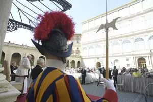 Alla domanda: «Santità, quante persone lavorano in Vaticano?», Giovanni XXIII, notoriamente, rispose con una battuta rimasta nella storia: «Circa la metà». Un aneddoto tornato in mente a molti, quanto papa Francesco ha voluto rendere pubblicamente omaggio al suo autista che oggi va in pensione, e ha colto l’occasione per ringraziare i tanti laici che in Vaticano, appunto, lavorano. «Qui in Vaticano c'è tanta varietà di gente, i preti, i cardinali, le suore che lavorano, tanti laici tanti... e oggi vorrei soffermarmi per ringraziare un laico che oggi va in pensione, Renzo Cestiè: lui ha cominciato a lavorare a 14 anni, veniva in bicicletta, oggi è l'autista del papa: un applauso a Renzo e alla sua fedeltà. E' una di quella persone che porta avanti la Chiesa con il suo lavoro, la sua benevolenza e la sua preghiera: la ringrazio tanto e anche – ha concluso il Papa – profitto per ringraziare tutti i laici che lavorano con noi in Vaticano».