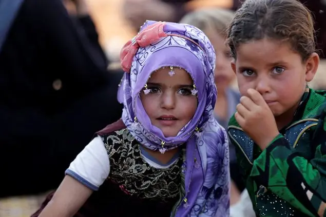(Foto Reuters qui sopra: bambini siriani in campo per rifugiati. Foto Ansa in copertina: papa Francesco all'Angelus)