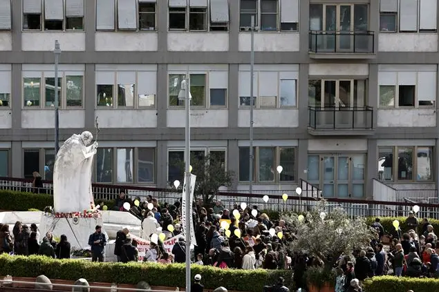 Erano circa trecento i bambini presenti a mezzogiorno, l’ora tradizionale dell’Angelus, nel piazzale del Policlinico Gemelli per portare una «carezza simbolica», come ha detto padre Enzo Fortunato, presidente del Pontificio Comitato della Giornata Mondiale dei Bambini, al Papa ricoverato al decimo piano. I piccoli hanno portato disegni e letto le loro letterine. Ci sono anche cori che chiamano «Papa Francesco, Papa Francesco». «Dov'è il Papa?», hanno chiesto i più piccoli sperando che Francesco si affacciasse.